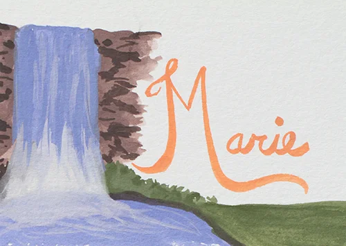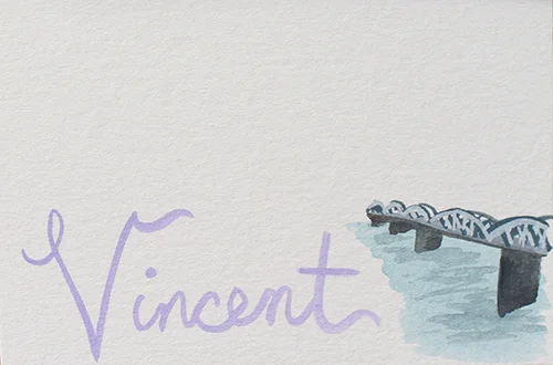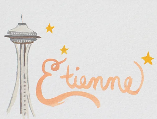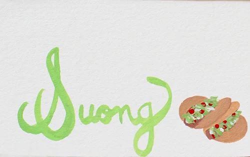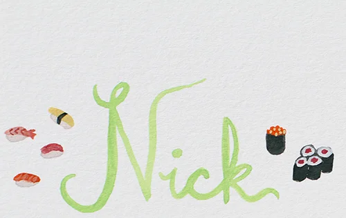 in addition to the save the dates and invitations, i also painted place cards for the tables at remi and nu's wedding. each table was a place that was significant to them (a place they've lived, a place their family is from, a place they've traveled to together...), and each place card featured a special thing from that place. i spent about 2 months working on these, referencing photos of lots of things i would ordinarily never choose to paint for myself. hope you enjoy them as much as i do!